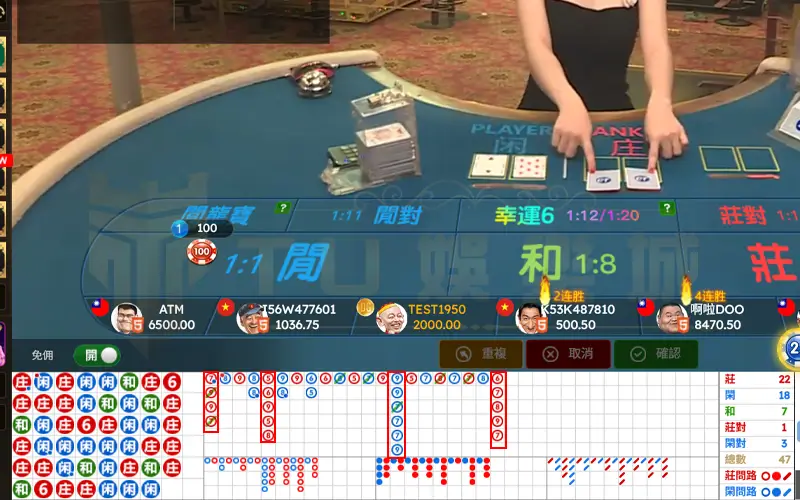 我們以DG百家樂舉例來看,從紅框處可以看到DG很貼心已經幫我們顯示目前百家樂牌路是甚麼了!那你知道百家樂長龍是最容易的嗎?小邊找了一桌最明顯的來跟大家做解說!