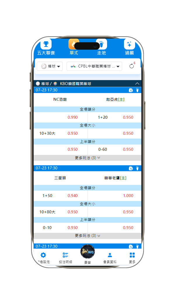 選擇想要投注的體育賽事,如NBA、世界盃、奧運等,並進行投注。