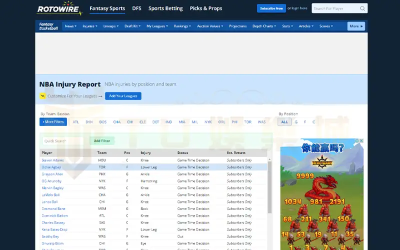 每日更新NBA各隊傷病名單及最新動態,密切關注球員的受傷情況與康復進展。