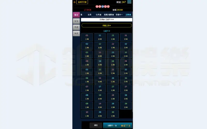 尾數玩法的規則簡單明瞭,只需玩家預測並投注數字的最後一位。由於每個0到9的數字尾數出現的機率相等,因此這種玩法的中獎率相對較高。這種方式非常適合那些喜歡依賴運氣和直覺下注的玩家,並且能提供相當的樂趣和興奮感。
